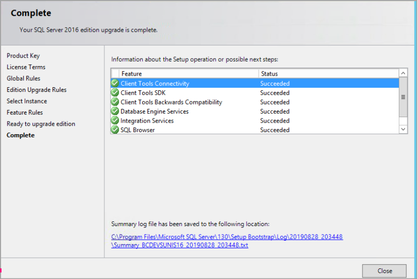 - After you click OK, you will get the SQL Server wizard for ‘ready to upgrade’ as below. Click upgrade from there.