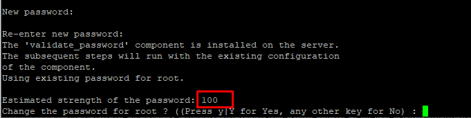 This will prompt you for the default root password (the password we note down earlier). You will be required to change it as soon as you enter it. The default password policy requires 12 characters, with at least one uppercase letter, one lowercase letter, one number and one special character.