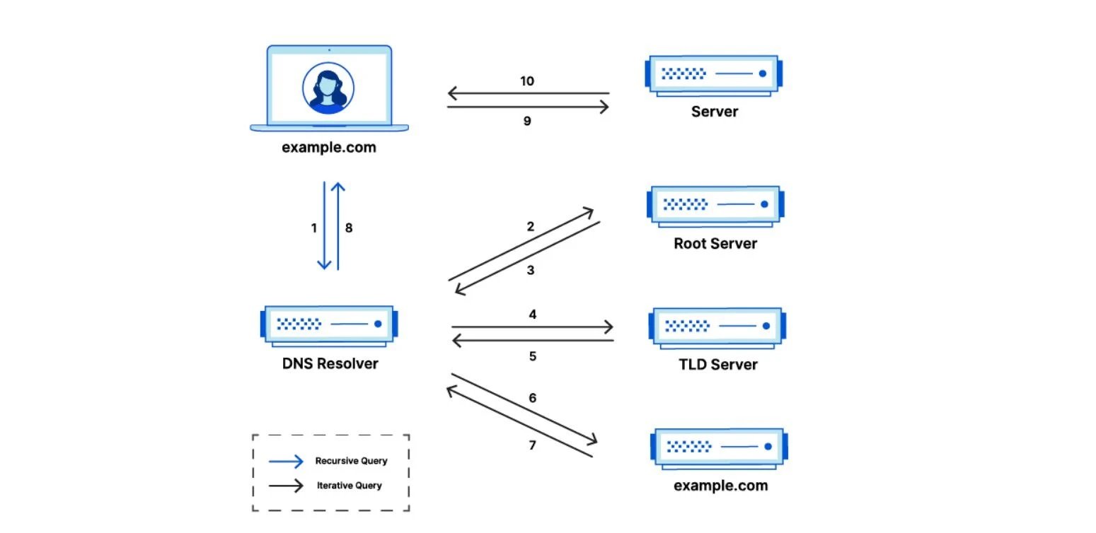 DNS (Domain Name System) translates user-friendly domain names like server into IP addresses that computers understand. The system relies on resource records such as A (Address) records that map hostnames to IPv4 addresses, AAAA for IPv6, CNAME (Canonical Name) for aliases, and NS (Name Server) records that identify authoritative servers for a zone.